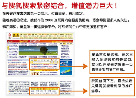 出現(xiàn)在搜狐關(guān)鍵詞搜索結(jié)果第一頁右側(cè),滾動顯示(以天為單位),吸引和挖掘更多潛在客戶的同時,享受更優(yōu)惠的價格!