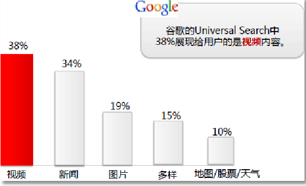 百度視頻搜索2007上線,并官方稱(chēng)視頻搜索需求很大 谷歌的Universal Search在2007年上線,它是結(jié)合新聞、視頻、圖片、地圖、圖書(shū)、產(chǎn)品和商戶(hù)的綜合搜索結(jié)果 視頻展現(xiàn)是谷歌Universal Search的首選 從搜索量我們就可以知道越來(lái)越多的網(wǎng)民使用搜索引擎來(lái)找視頻