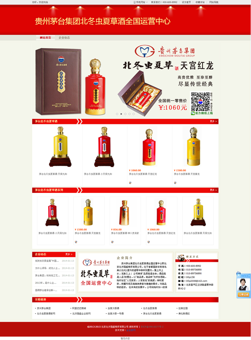 貴州茅臺(tái)集團(tuán)北冬蟲(chóng)夏草酒全國(guó)運(yùn)營(yíng)中心即北京北方強(qiáng)盛商貿(mào)有限公司,位于首都國(guó)家體育館鳥(niǎo)巢以北8公里外的溫哥華森林別墅內(nèi),屬上風(fēng)上水,龍脈之上; 公司秉承“品質(zhì)就是生命,酒品就是人品”的理念,以“高品質(zhì),高品味”為開(kāi)發(fā)思路,始終站在“人無(wú)我有,人有我優(yōu)”的高度,審時(shí)度勢(shì),把握市場(chǎng)及高端消費(fèi)者對(duì)健康的需求,對(duì)高品味的追求。