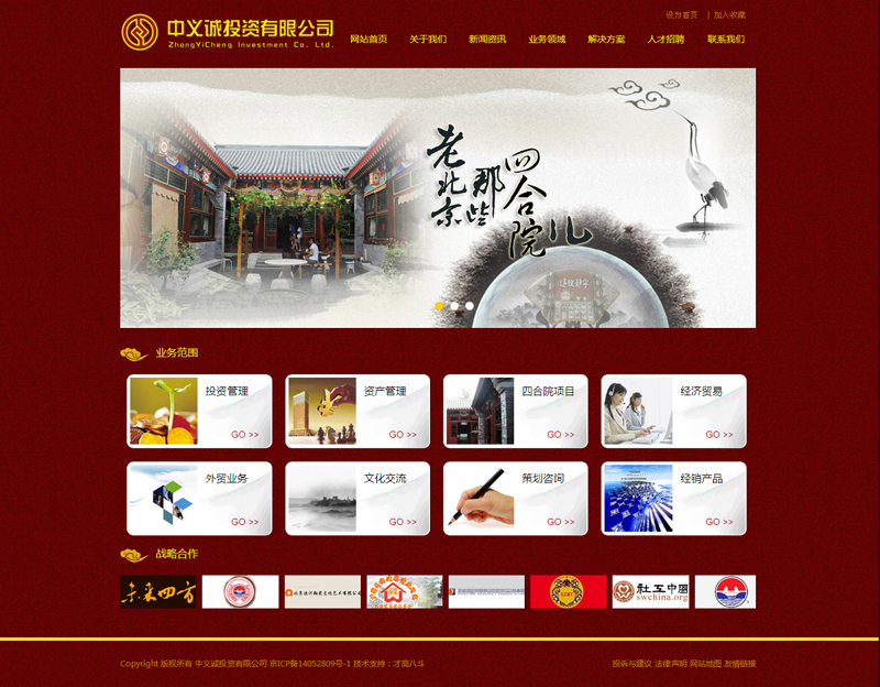 中義誠投資有限公司(以下簡稱“中義誠公司”)成立于2014年05月,注冊資本:1億元人民幣。中義誠公司自成立以來,一直秉承“創(chuàng)新經(jīng)營,和諧共贏”經(jīng)營理念,遵循“勇于擔(dān)當(dāng)、追求卓越”的企業(yè)精神,涉足四合院古建筑,基礎(chǔ)設(shè)施、城市綜合開發(fā)、房地產(chǎn)、金融、小城鎮(zhèn)建設(shè)等多個業(yè)務(wù)領(lǐng)域,尤其在操作四合院投資中,憑借多年積累豐富的經(jīng)驗和對市場準(zhǔn)確的把握,在業(yè)界和廣大客戶群中享有盛譽(yù)。