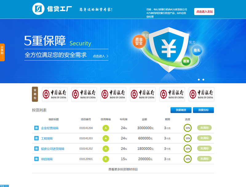 信貸工廠是中國最大的貸款搜索和服務(wù)平臺,截止2013年底,在貸款意向和成交量、成交率方面已經(jīng)位居業(yè)內(nèi)第一,是中國信貸搜索第一品牌。信貸工廠貸人尋找到最佳的貸款渠道,也能幫銀行及金融機(jī)構(gòu)尋找精準(zhǔn)匹配的信貸客戶!信貸工廠本身不提供貸款,而是重點(diǎn)著眼于幫助個人、中小企業(yè)篩選金融市場上的正規(guī)合法貸款渠道,幫助其最終實(shí)現(xiàn)貸款,實(shí)現(xiàn)網(wǎng)站"找正規(guī)貸款,就上信貸工廠"的定位初衷!信貸工廠是中國最大的貸款搜索和服務(wù)平臺,截止2013年底,在貸款意向和成交量、成交率方面已經(jīng)位居業(yè)內(nèi)第一,是中國信貸搜索第一品牌。信貸工廠可以為借貸人尋找到最佳的貸款渠道,也能幫銀行及金融機(jī)構(gòu)尋信貸工廠配的信貸客戶!信貸工廠本身不提供貸款,而是重點(diǎn)著眼于幫助個人、中小企業(yè)篩選金融市場上的正規(guī)合法貸款渠道,幫助其最終實(shí)現(xiàn)貸款,實(shí)現(xiàn)網(wǎng)站"找正規(guī)貸款,就上信貸工廠"的定位初衷!