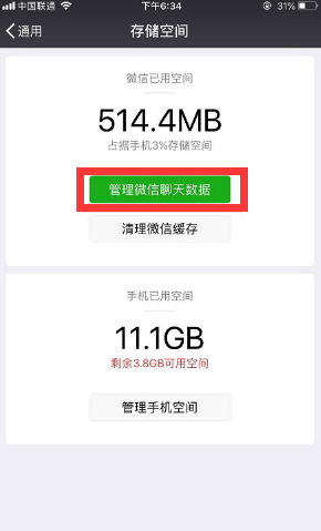 如果想借此機(jī)會(huì)進(jìn)一步清理微信的聊天記錄,可以點(diǎn)擊【管理微信聊天數(shù)據(jù)】。